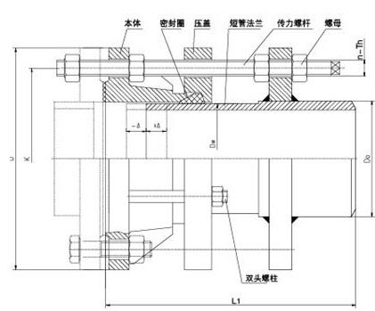 2.該產(chǎn)品采用金屬鑄造或組成,松套部位選用梯形橡膠密封圈,在壓蓋和螺栓的作用下。